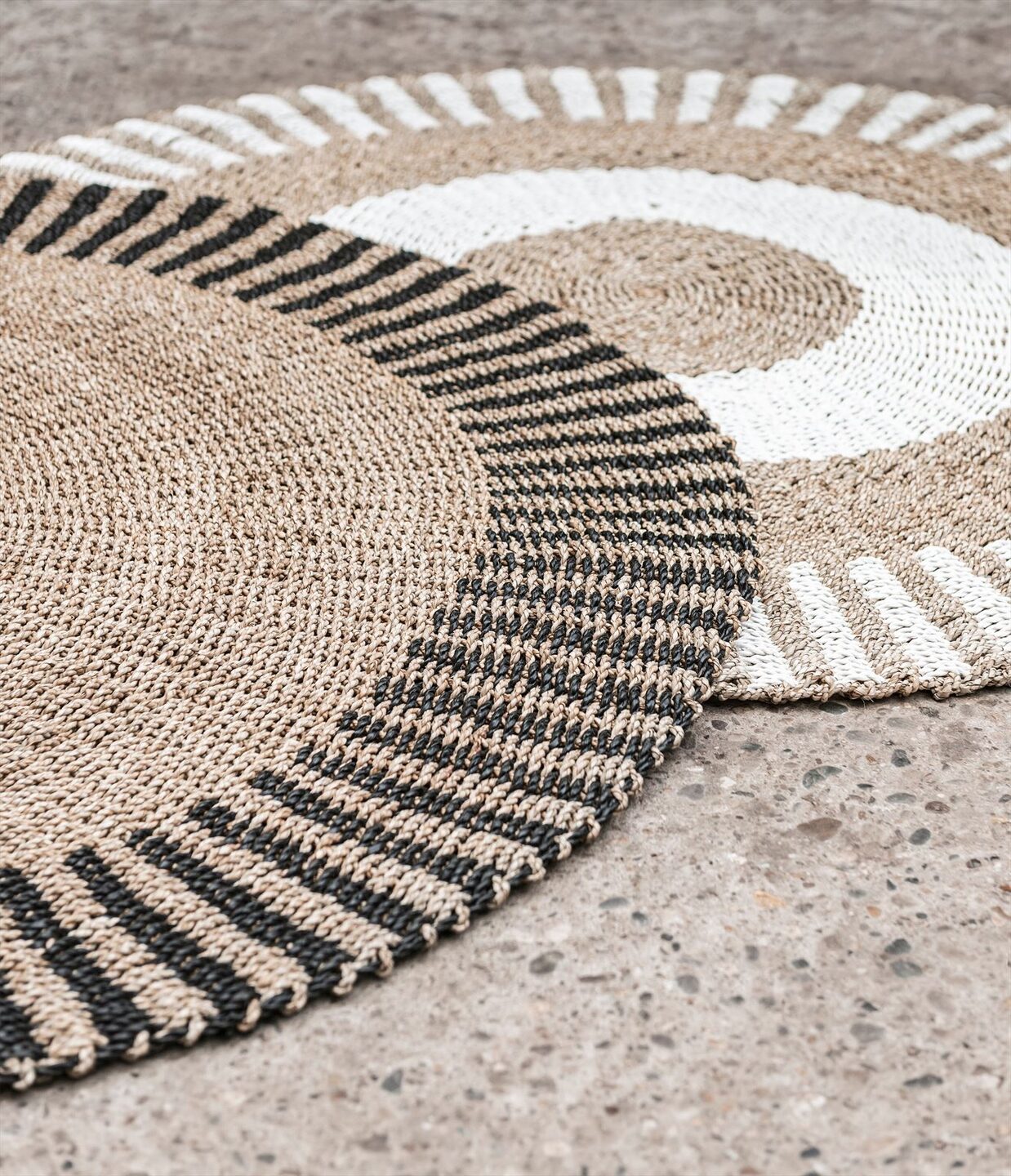 MUST Living Carpet Estrella is gemaakt van rafia en zeegras. Dit materiaal is een groen alternatief voor kunstvezels en is waterafstotend. Het carpet heeft een doorsnede van Ø150 cm.