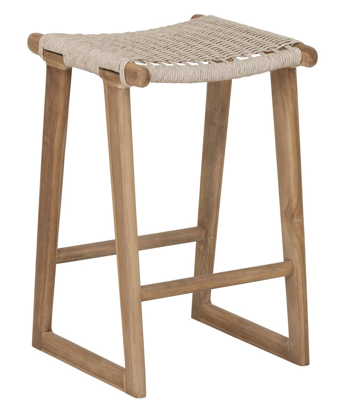Counter chair Kento,62x41x39 cm, rustic teakwood, seat synthetic rope