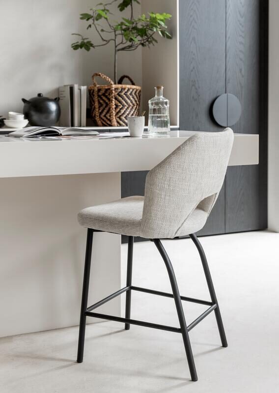 Counterkruk Bloom van het Nederlandse lifestyle merk MUST Living heeft een afmeting van 100x54x57 cm. De zithoogte is 65 cm. De zitting is bekleed met polyester in een naturel kleur. De kruk is afgewerkt met zwarte poten.
