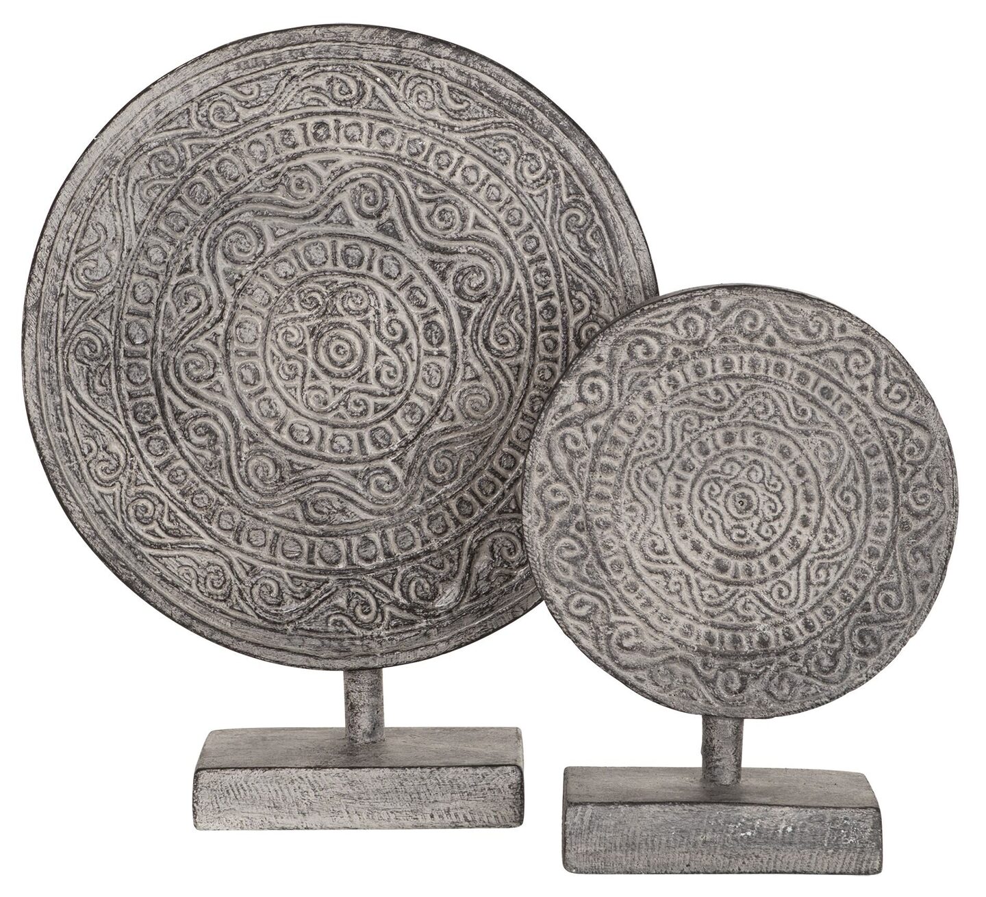 Decorative Circle on stand Old White, set of 2,26x19x9 cm / 38x30x10 cm. Old White