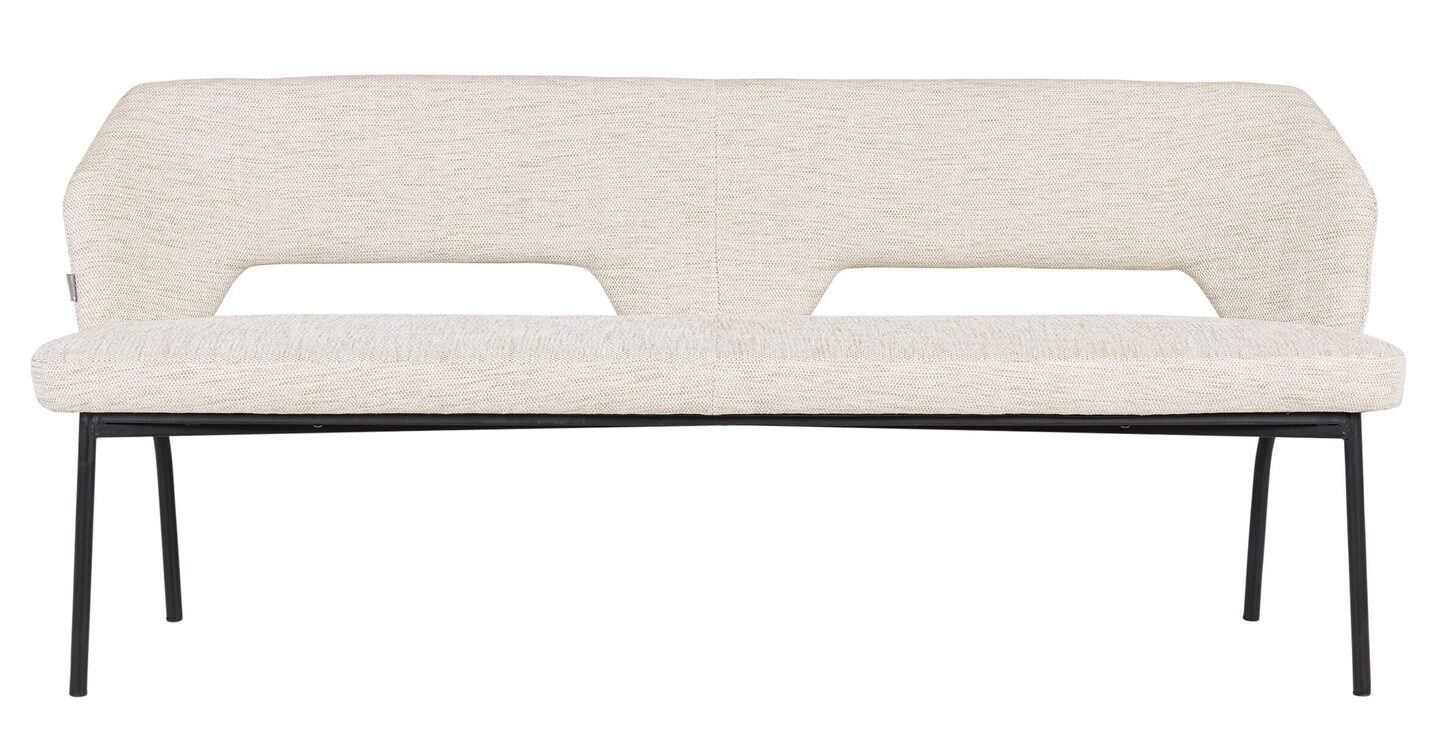 Eetbank Bloom van het Nederlandse lifestyle merk MUST Living heeft een afmeting van 86x190x57 cm. De zitting is bekleed met viscose/ polyester stof in een naturel kleur. De eetbank is afgewerkt met zwarte poten.
