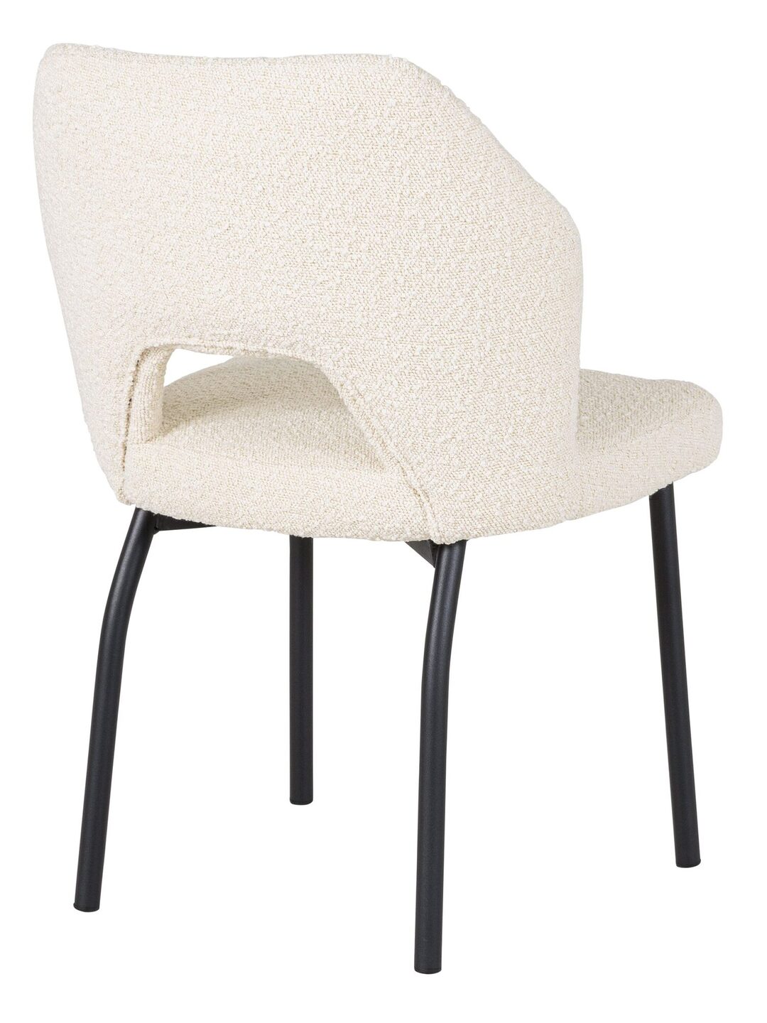 Eetkamerstoel Bloom van het Nederlandse lifestyle merk MUST LIVING heeft een afmeting van 82x54x57 cm. De zitting is bekleed met boucle katoen/ polyester in een naturel kleur. De stoel is afgewerkt met zwarte poten.