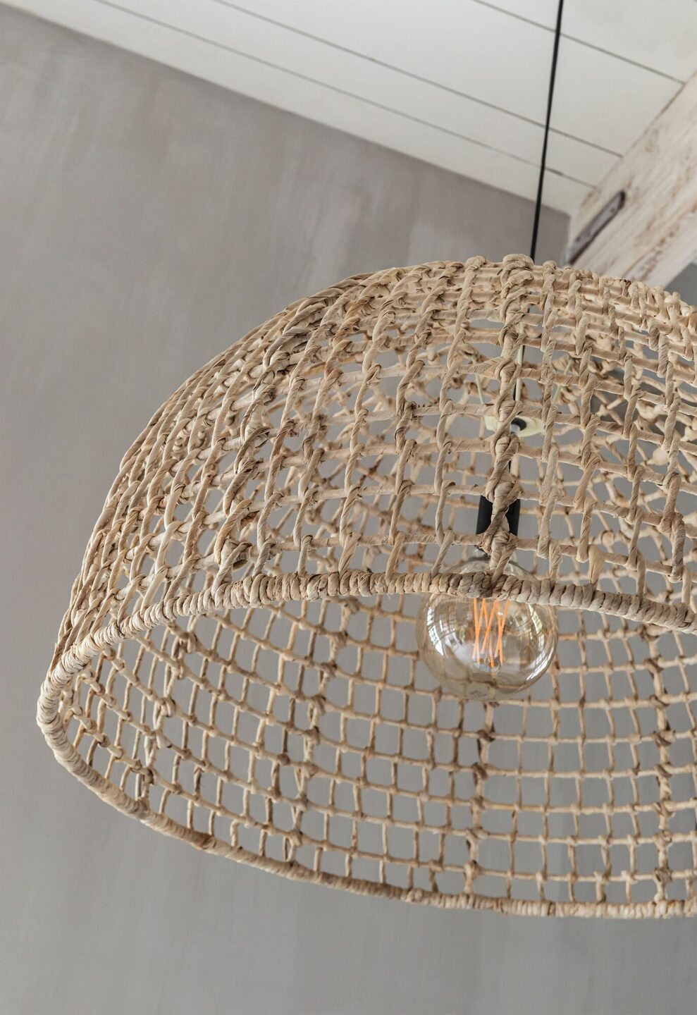 Hanglamp La Savina van het merk MUST Living is gemaakt van bananenblad. Dit bijzondere materiaal is verwerkt in een mooi patroon, waardoor een mooi lichtspel ontstaat. De lamp heeft een afmeting van 45xØ72 cm.