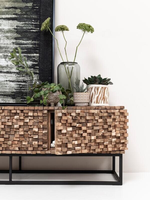 Een bijzondere en opvallend meubel, dat is tv meubel Sticks zeker. Het meubel is namelijk gemaakt van verschillende balkjes hout. Dit geeft een speels en stoer effect. Tv meubel Sticks heeft een afmeting van 50x145x40 cm.