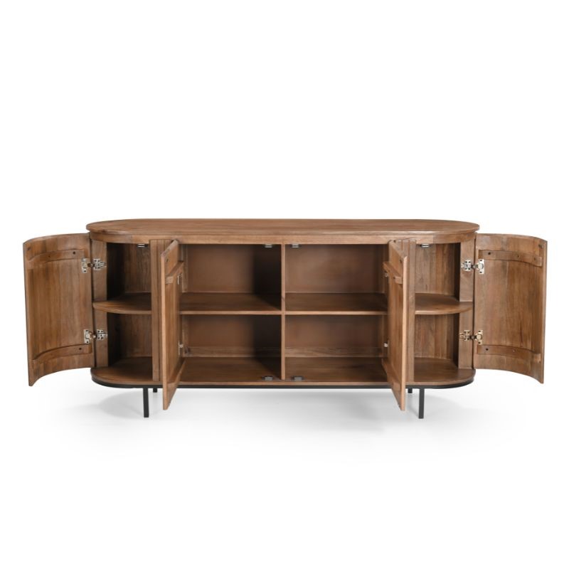 Onze lijn Noor heeft strakke lijnen en speelse latten. De strakke ronde vormen zorgen voor meubels die in veel interieurstijlen past. Deze kast heeft 4 deuren waarachter je van alles op kunt bergen. De lijn Noor is verkrijgbaar in twee kleuren en beschikt over dressoirs, tv meubels, wandkasten en verschillende tafels.