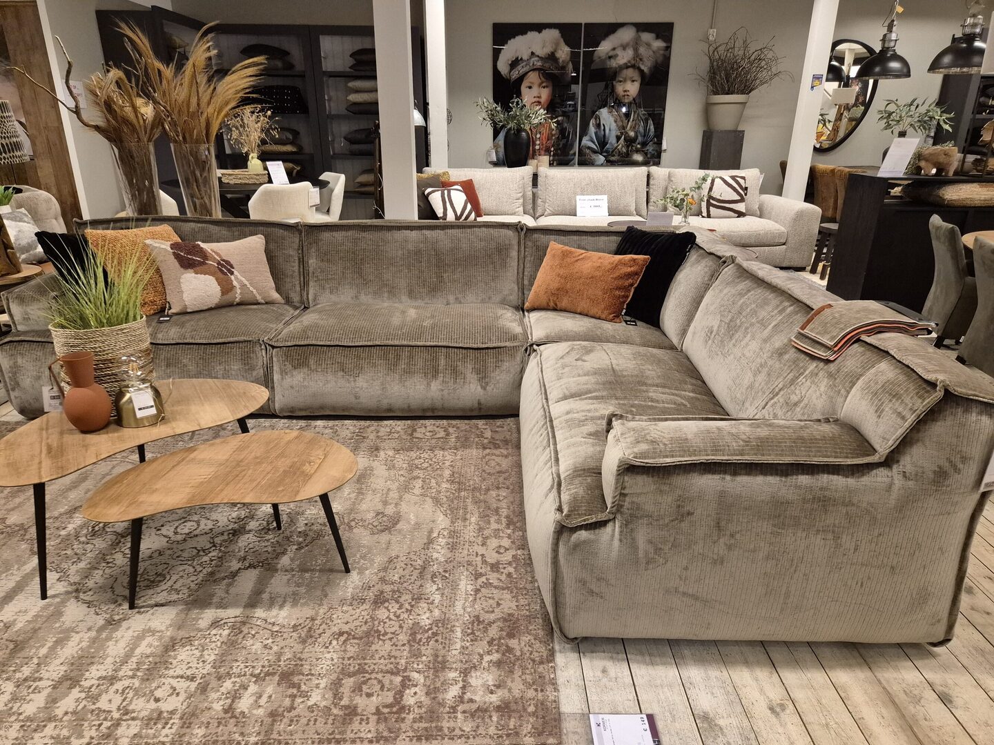 Getoonde prijs in de opstelling: 1 zits met arm Links, 1.5 zits zonder arm, hoek, 1.5 zits arm rechts in de stof Levis.