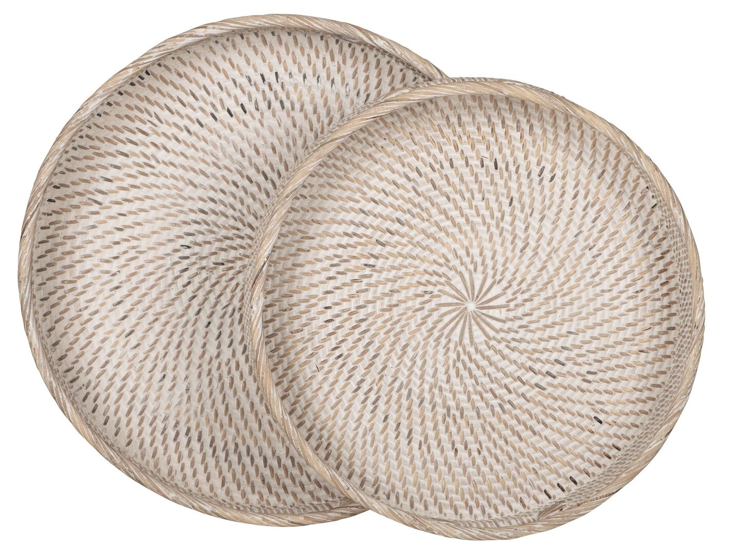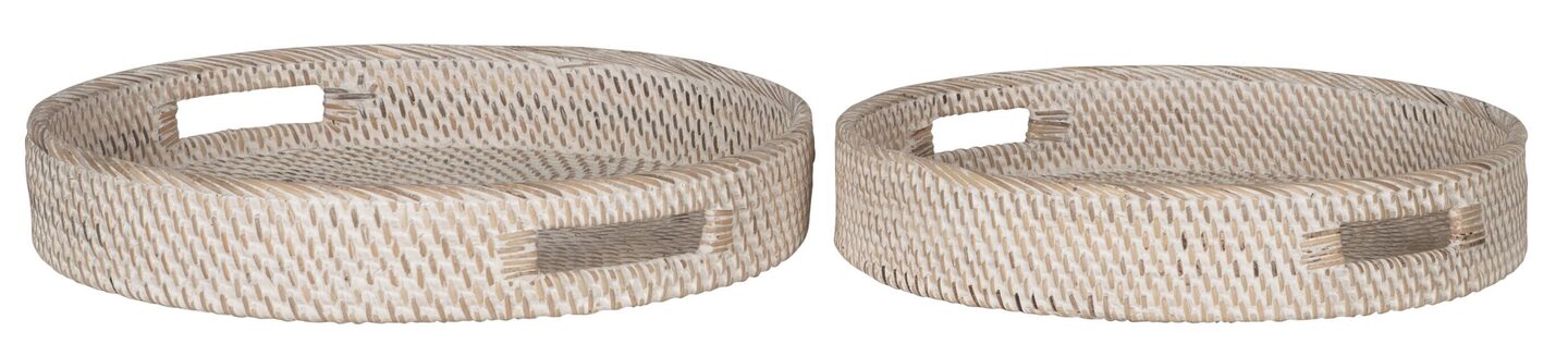 Dienblad Saint Barths van MUST Living is een set van twee. De dienbladen hebben een afmeting van 7xØ40 cm en 6xØ35 cm, de dienbladen zijn ook beschikbaar in het ovaal. De dienbladen zijn gemaakt van rotan en afgewerkt met een witte finish.