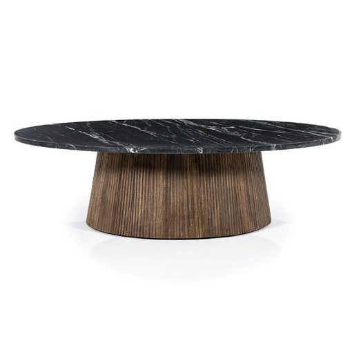 Zeer subtiel uitgevoerde mangohouten onderstel maakt deze tafel een plaatje in de woonkamer. Neem daarbij nog het zwarte marmeren blad en je hebt een stoer, vintage, tijdloos meubel. In dezelfde lijn vind je een bijzettafel.