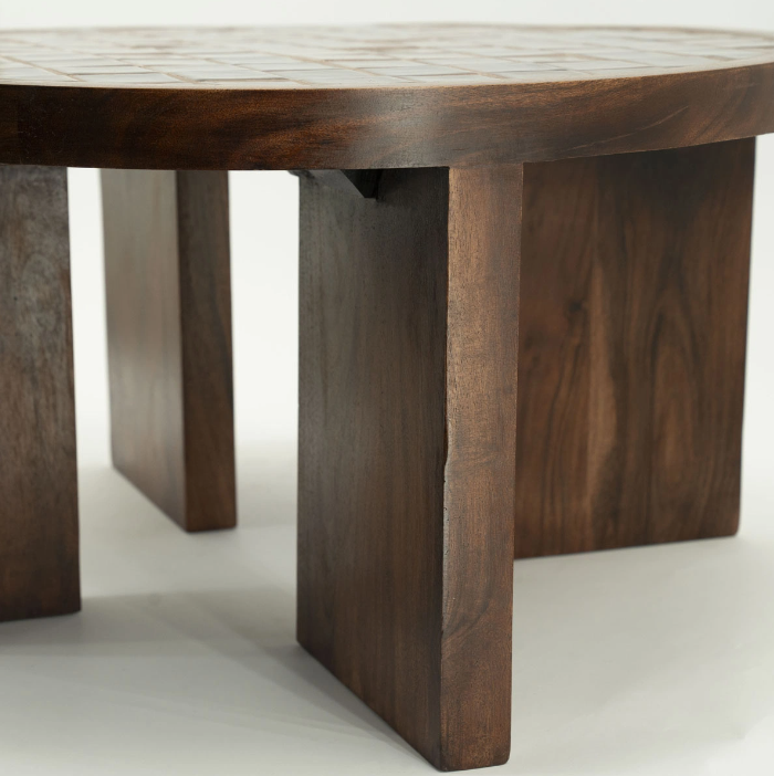 De TiledUp tafels van By-Boo combineren vakmanschap met design. Deze unieke tafels zijn gemaakt van hoogwaardig mangohout en hebben een tafelblad dat is ingelegd met glanzende keramische tegeltjes.