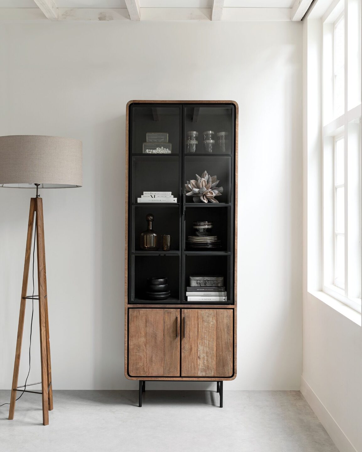 - Functionele elegantie: Dankzij de slimme indeling berg je spullen die je liever uit het zicht houdt netjes op, terwijl je jouw favoriete items in het vitrinedeel prachtig presenteert.