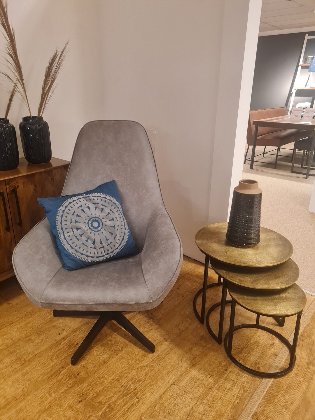 Dit betreft een showmodel in microleder Bull grey 65.