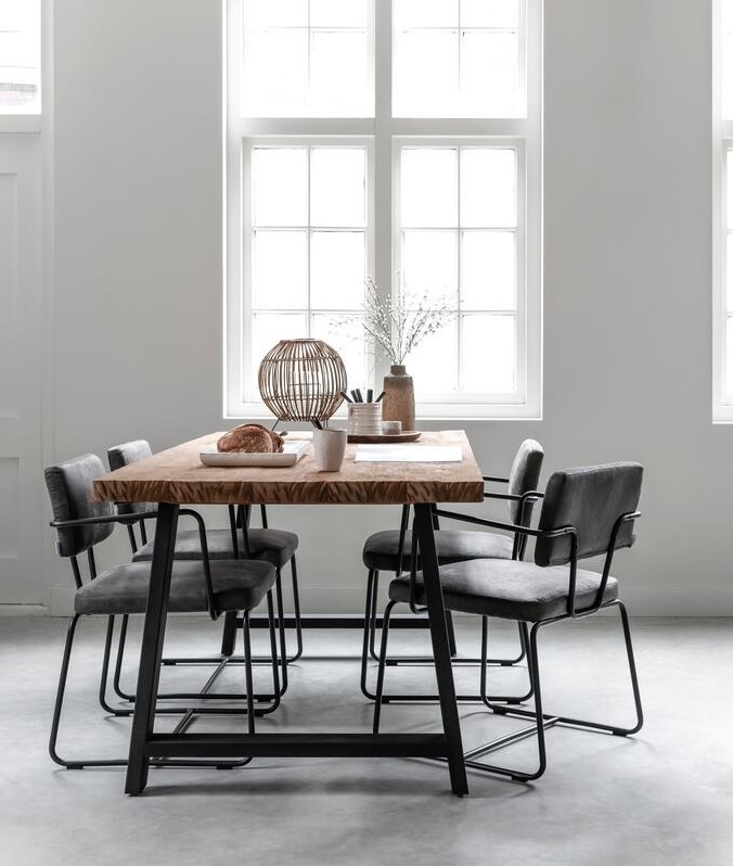 Eettafel A-team is gemaakt van teakhout en is afgewerkt met een metalen frame. De tafel heeft een afmeting van 78x225x90 cm en het blad heeft een dikte van 5 cm.