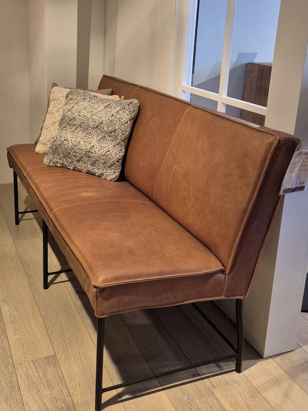 De Zouterwoude eetkamerbank van Haveco is een lekkere nonchalante eetkamerbank die nog eens heerlijk zit ook. De poten zijn zwart gepoedercoat. Het showmodel heeft een afmeting van 160 cm breed. De eetkamerbank is uitgevoerd in rugby leder cognac.