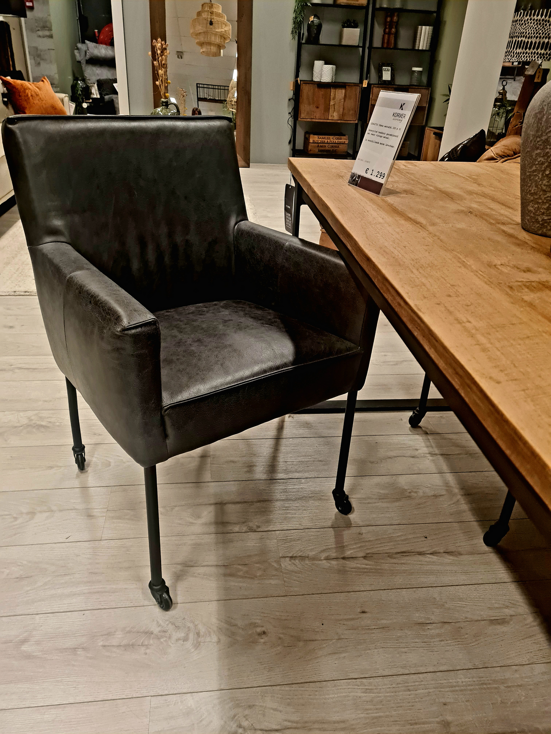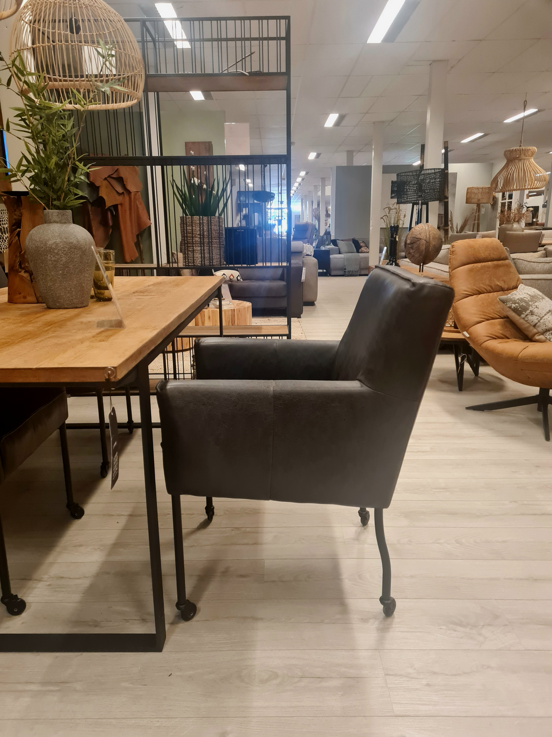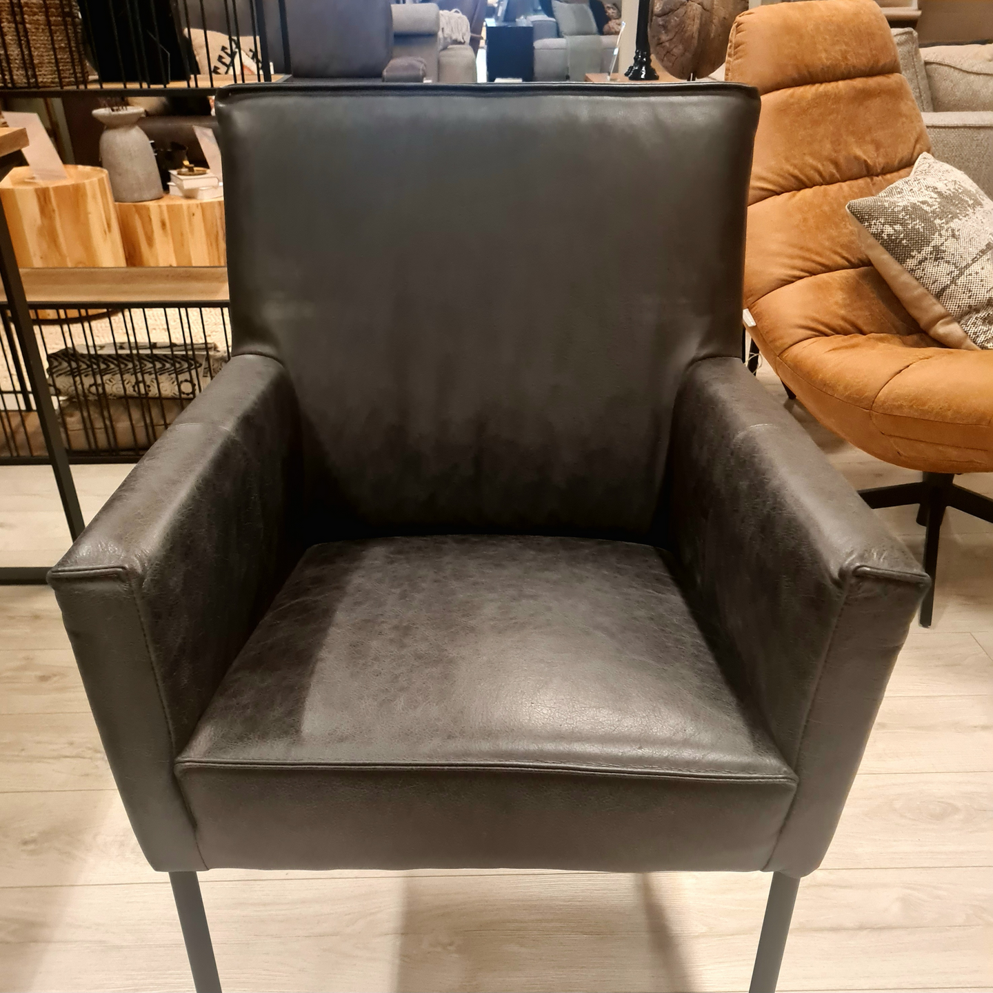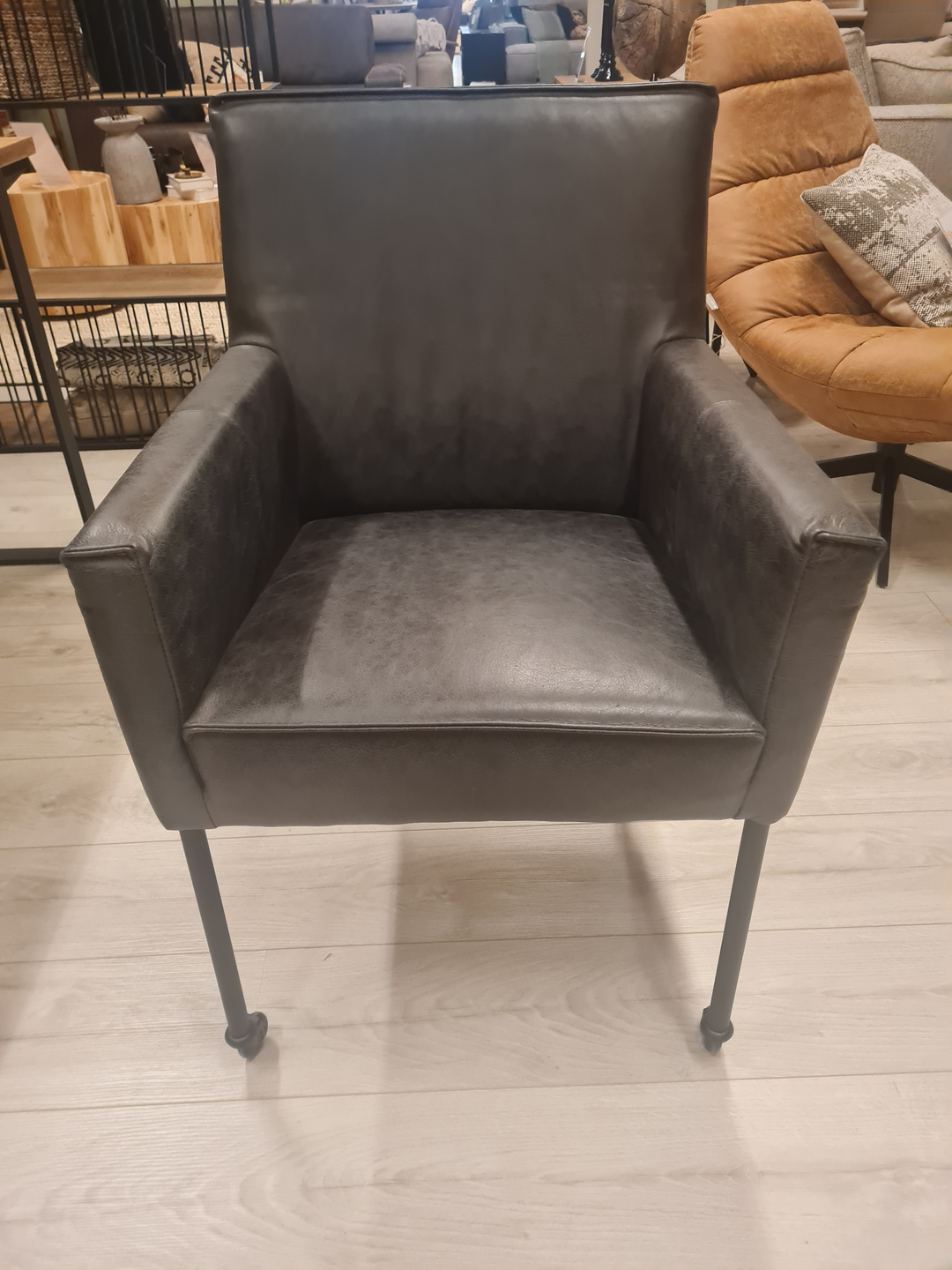 De Nicole eetkamerstoel uit onze Chill-line Collectie is een hele comfortabele stoel. De stoel wordt volledig in Nederland gemaakt. Dit betreft een showmodel bestaande uit zes armstoelen in vintage leder off black.