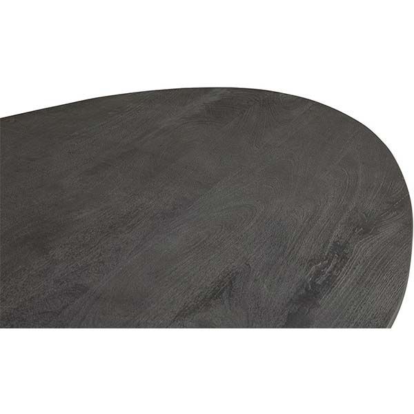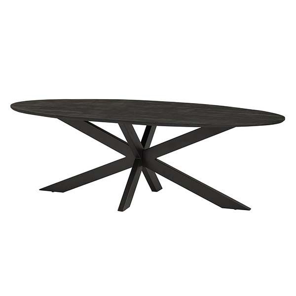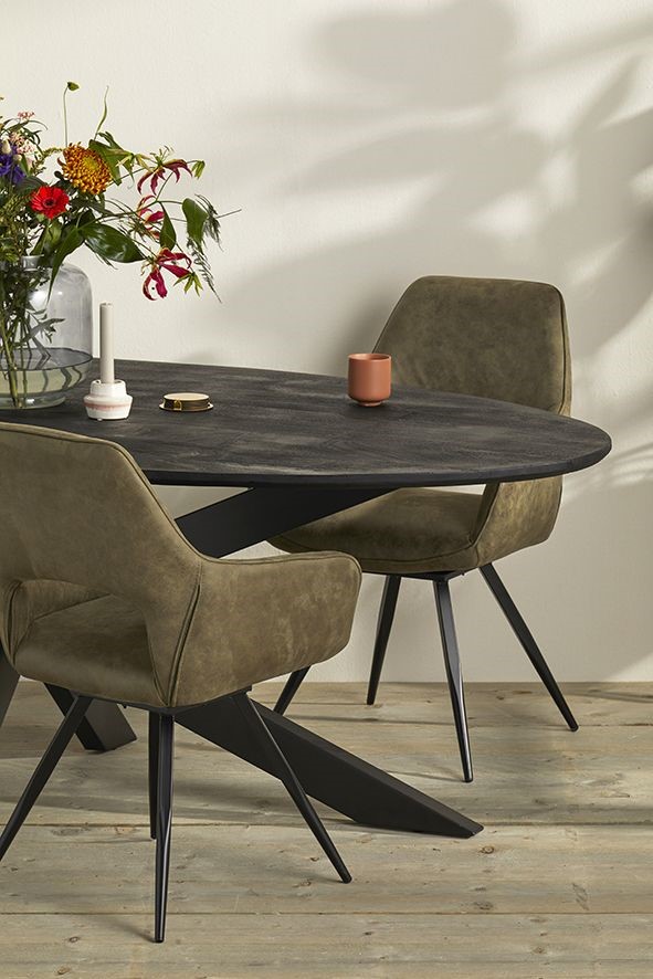 De eetkamertafels uit deze collectie zijn gemaakt van massief mangohout (3 cm). Het blad is zwart gezandstraald (mat gelakt) en heeft een verjongde rand. Het onderstel (5x10) is gemaakt van metaal met een zwarte poedercoating. De combinatie van de zwarte kleur, de ronde vorm en de verjongde rand geven de eetkamertafel een moderne look. Hoe gezellig is het dat iedereen aan kan schuiven en elkaar aan kan kijken aan deze tafel?