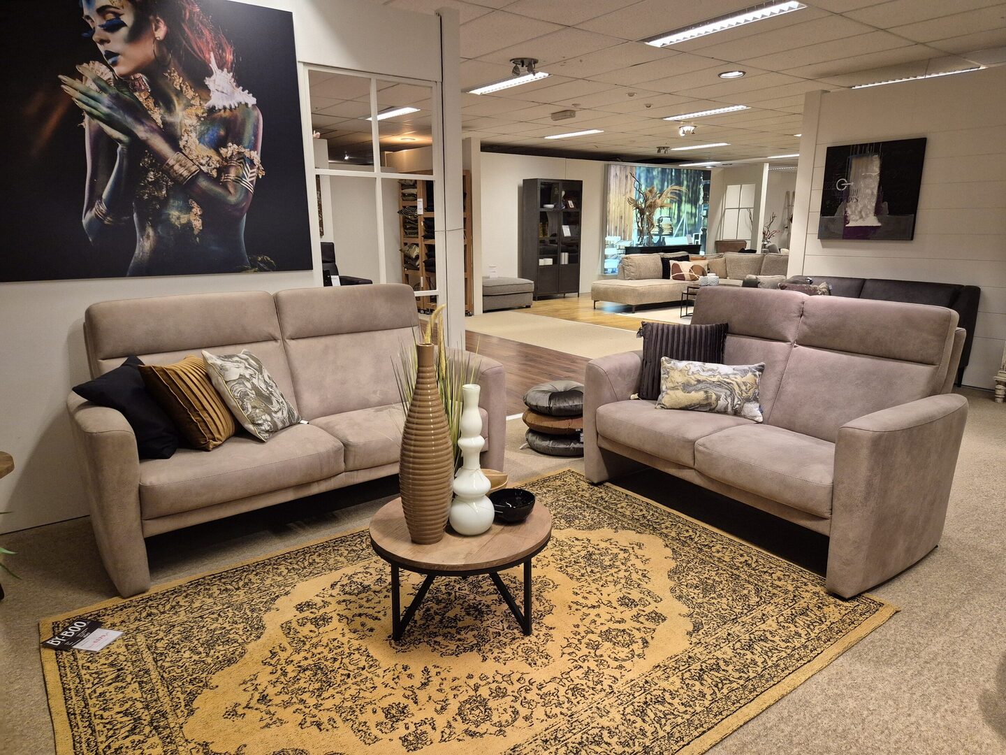 Bank Lennon 2 + 2.5 zits betreft een showmodel uitgevoerd in de stof Harley beige.
