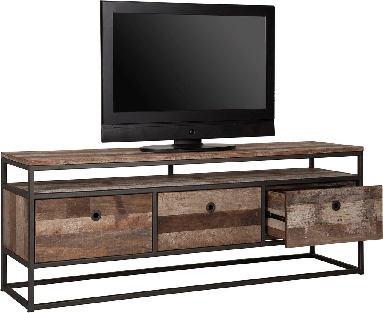 TV meubel Tuareg No.2 is gemaakt van gerecycled hout en is afgewerkt met een zwart metalen frame. Het meubel heeft 3 handige laden.