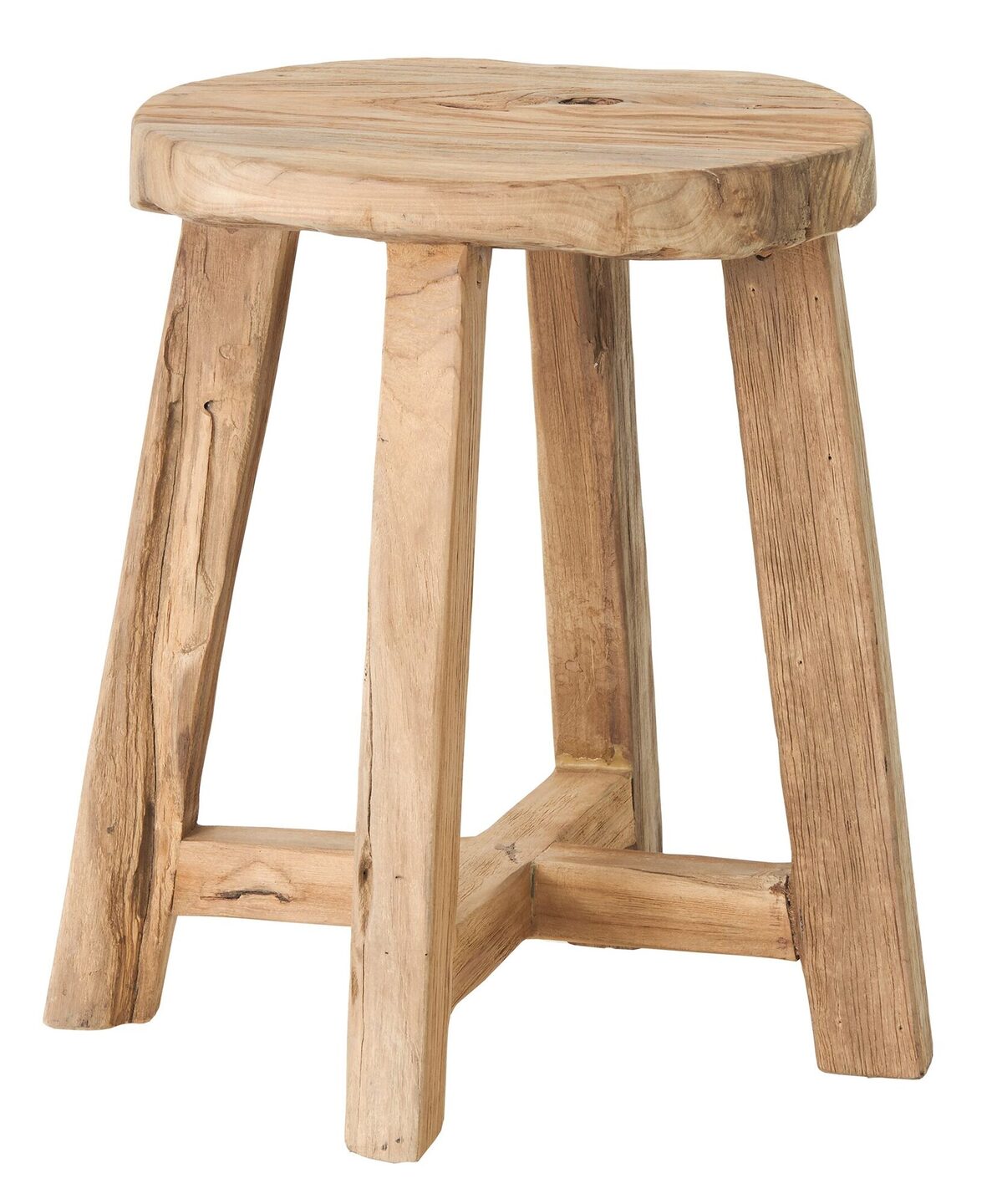 Deze krukjes van Must Living zijn gemaakt van gerecycled teakhout en verkrijgbaar in drie kleuren.