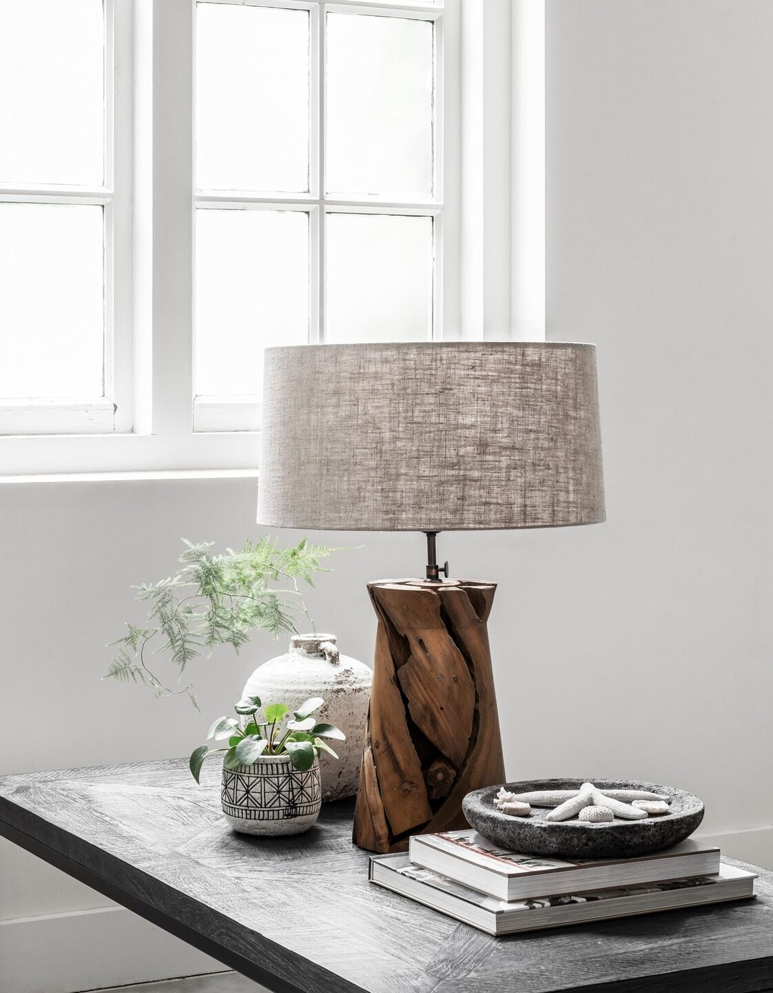 Tafellamp Jungle Naturel small van het Nederlandse lifestyle merk MUST LIVING heeft een lampenvoet gemaakt van teakhout. Door de vormen van het teakhout is elke lampenvoet uniek. Tafellamp Jungle Naturel is ook verkrijgbaar in een groter formaat.
