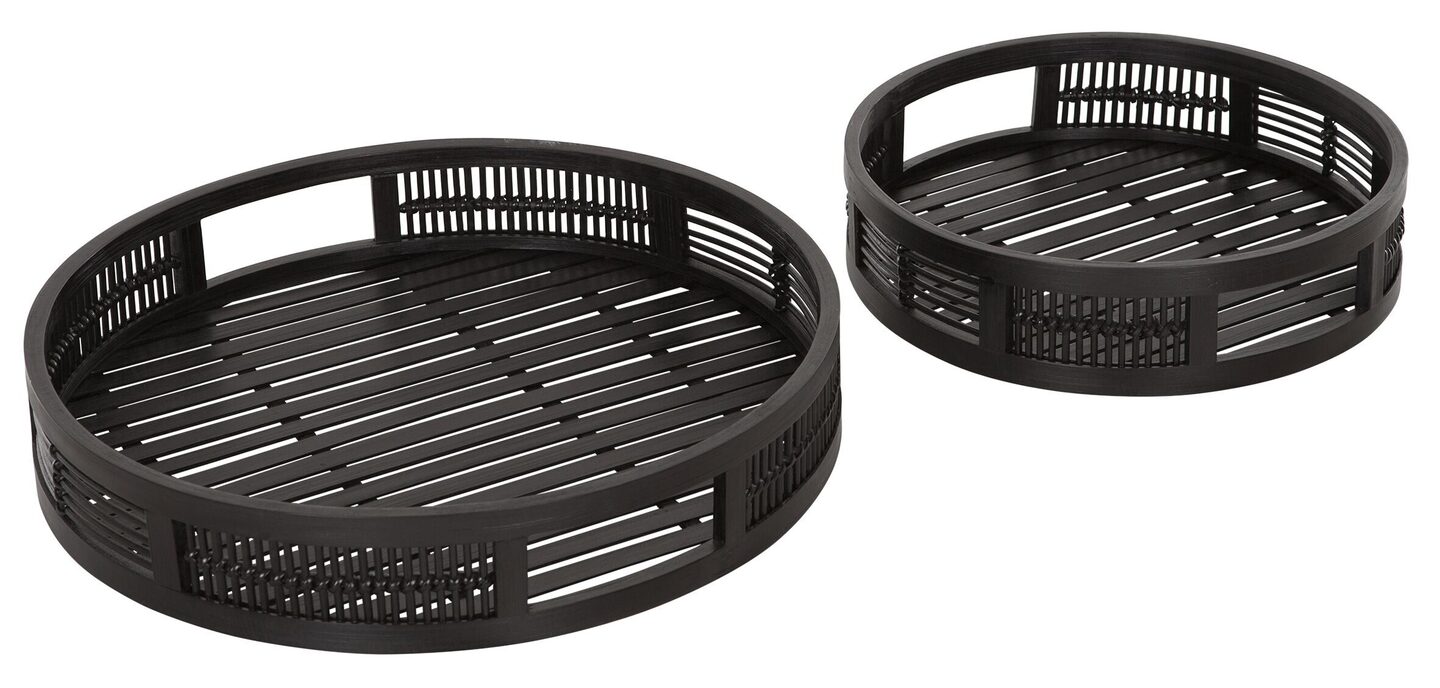 Tray Algarve round BLACK, set of 2 - ORDER by 2 pcs,7xØ30 cm / 7xØ40 cm, Bamboo black