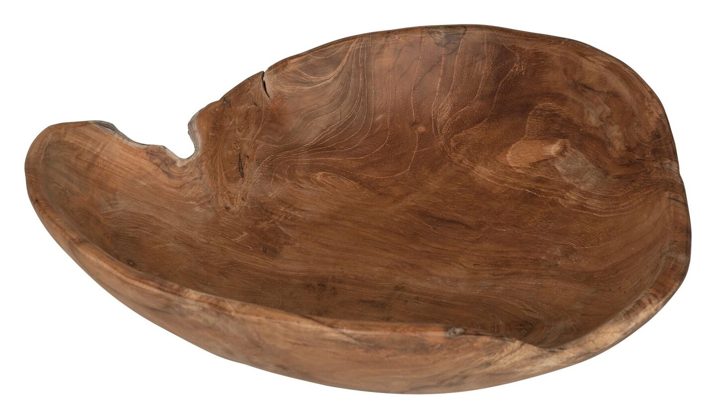 Schaal Delight van het merk MUST Living heeft een afmeting van ±9xØ38 cm. De schaal is gemaakt van teakhout.
