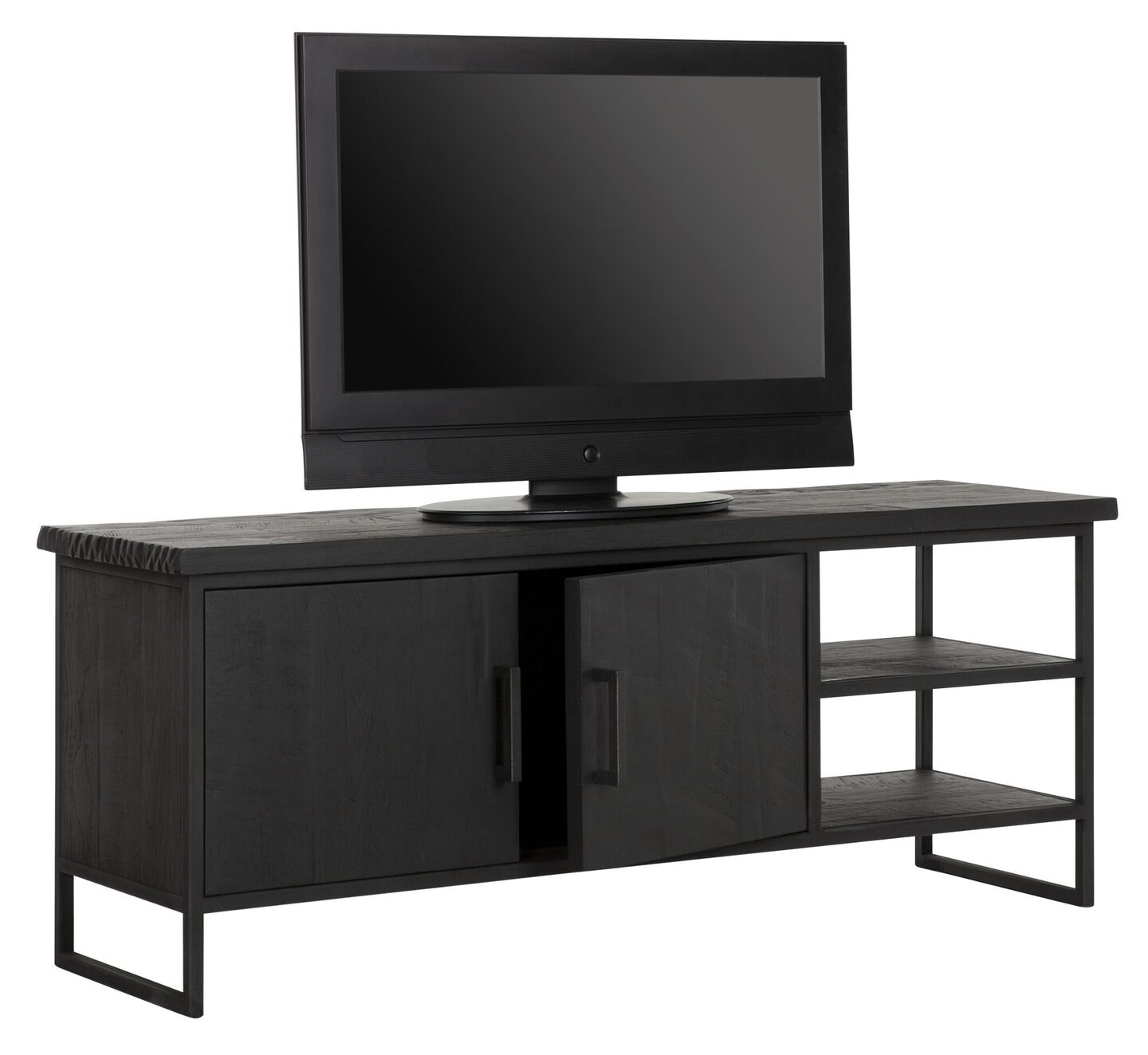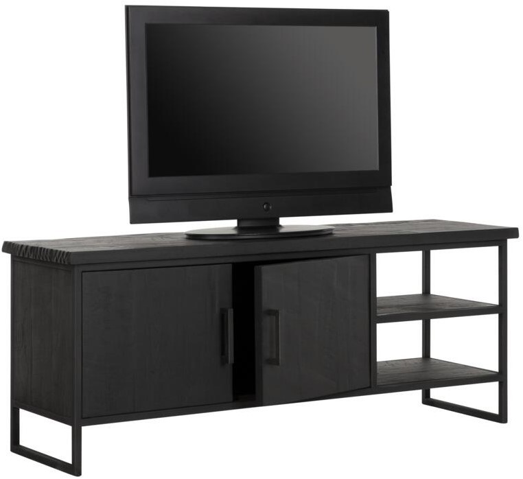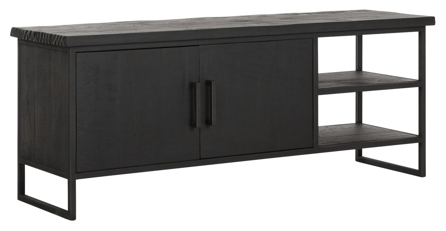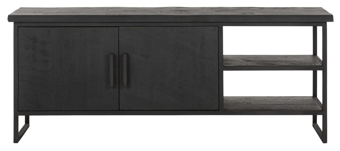TV meubel Beam No.2 small is een meubel uit de collectie van DTP Home Timeless Black. Het meubel is gemaakt van gerecycled teakhout en voorzien van een zwarte beits met een transparante lak. De afmeting van het TV meubel is 55x140x40 cm en bestaat uit 2 deuren en 2 open vakken.