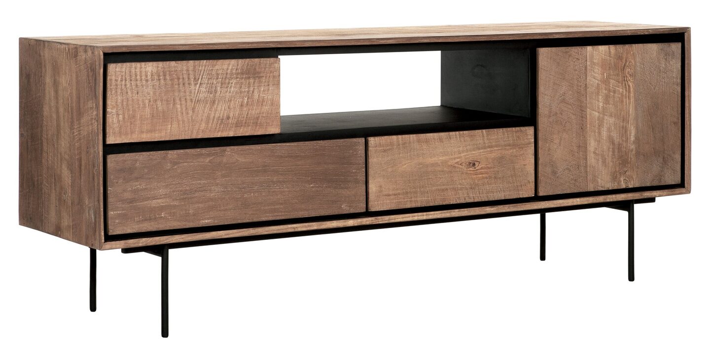 Het metropole tv-meubel van DTP Home biedt voldoende opbergruimte. Dit karaktervolle tv-dressoir heeft een kastdeurtje, drie lades en een ruim open vak. Zo is er voldoende ruimte om de afstandsbediening en andere spullen op te bergen, maar wel uit het zicht. De Metropole is gemaakt van gerecycled teakhout dat met de hand is bewerkt. Hierdoor zijn de scheurtjes, lijnen en onregelmatigheden op de opbergkast nog zichtbaar. Door de combinatie van het robuuste teakhout en de metalen accenten krijgt de kast een stoere uitstraling.