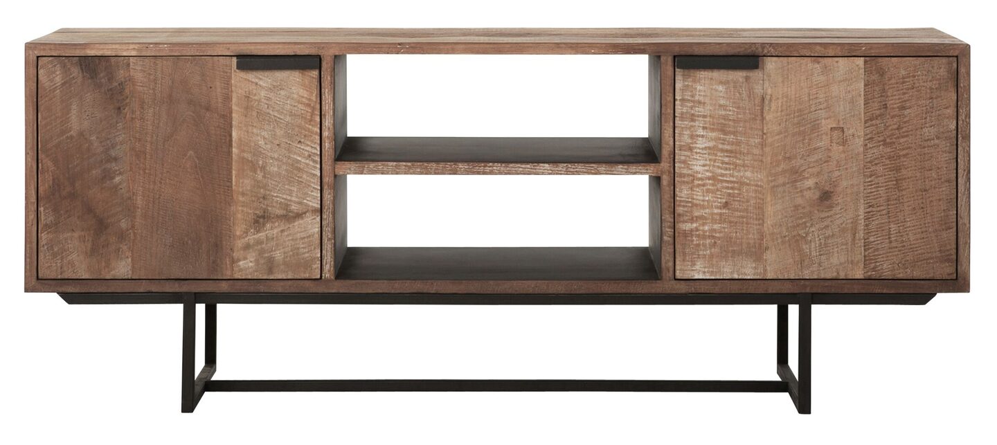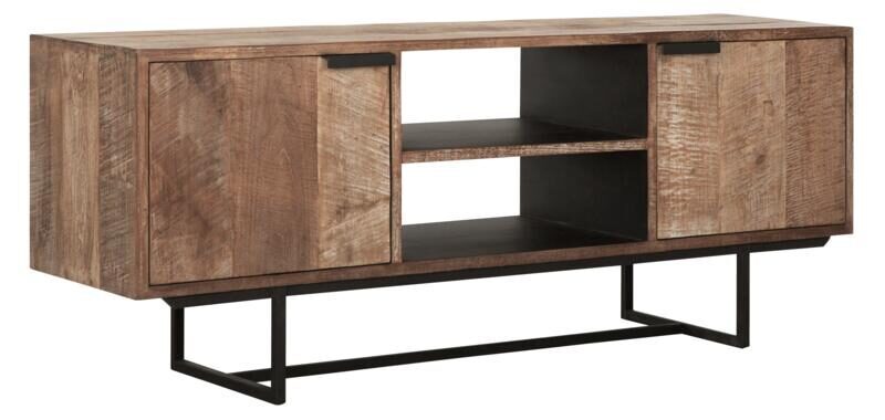 Het Odeon tv meubel heeft een afmeting van 60x150x40 cm en heeft 2 lades en 2 open vakken. Het tv meubel is ook verkrijgbaar in 200 cm. De zwarte rechte grepen zorgen voor een simpele schoonheid. Met de fijnere metalen frames behoudt het tv meubel een luchtig design, die je interieur niet verzwaard.