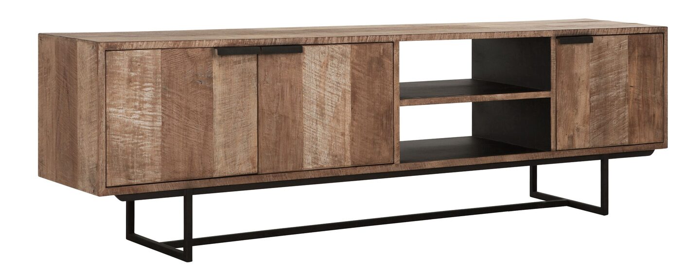 Het Odeon tv meubel heeft een afmeting van 60x200x40 cm en heeft 2 lades en 2 open vakken. Het tv meubel is ook verkrijgbaar in 150 cm. De zwarte rechte grepen zorgen voor een simpele schoonheid. Met de fijnere metalen frames behoudt het tv meubel een luchtig design, die je interieur niet verzwaard.