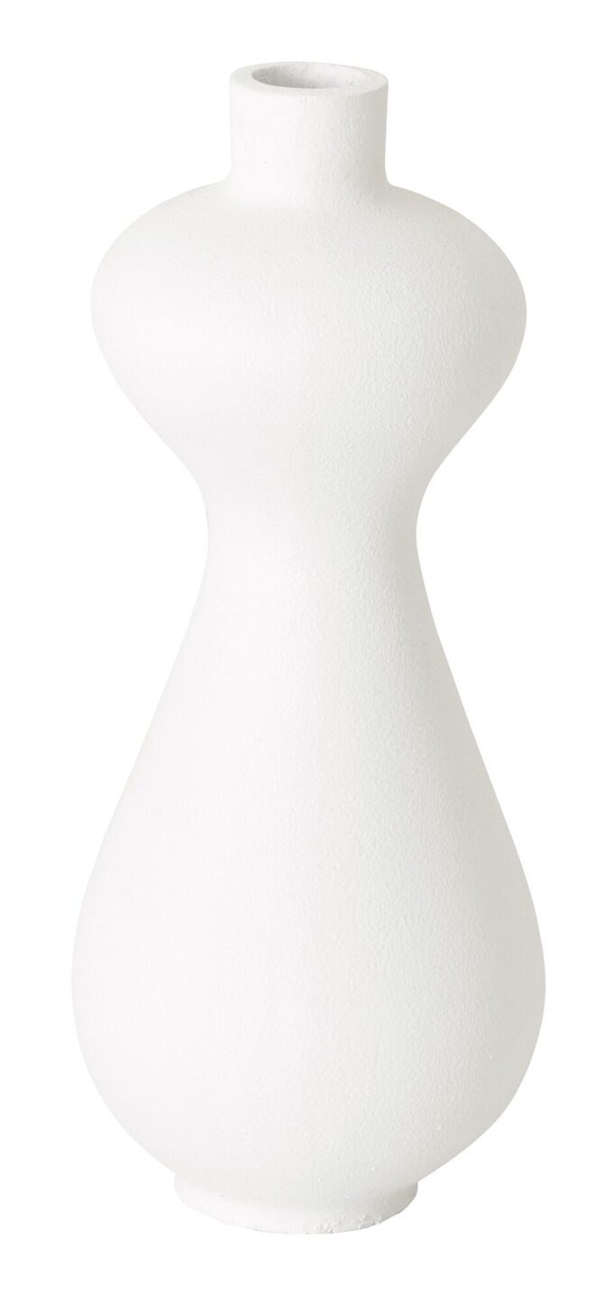 Deze vazen uit de Must Living Collectie zijn gemaakt van kleurloos fiber cement en vervolgens geverfd met een dikke witte structuurverf. De vazen zijn egaal van kleur, wat de nadruk legt op de vorm en structuur.