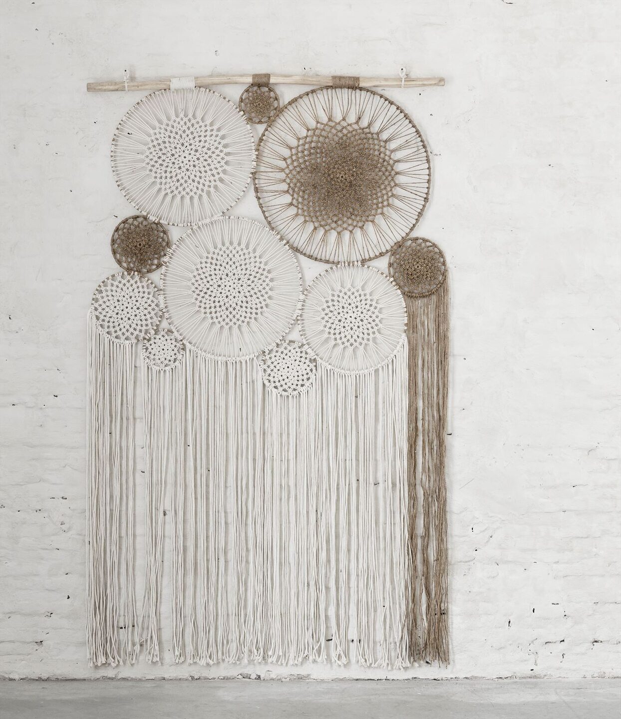 Wandecoratie Boho brengt tropische sferen met zich mee. De decoratie wordt opgehangen door middel van een bamboestok en is voor de rest geheel gemaakt van macramé. De afmeting bedraagt 195x119 cm.