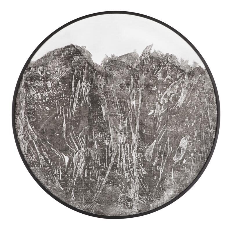Wandpaneel Imaginary is gemaakt van het duurzame product jute, wat komt van de stam en schil van een jute plant. Vanwege het natuurlijke product is elk item uniek. Het wandpaneel heeft een zwart frame en is Ø86x4 cm, en is er ook in een kleinere versie.